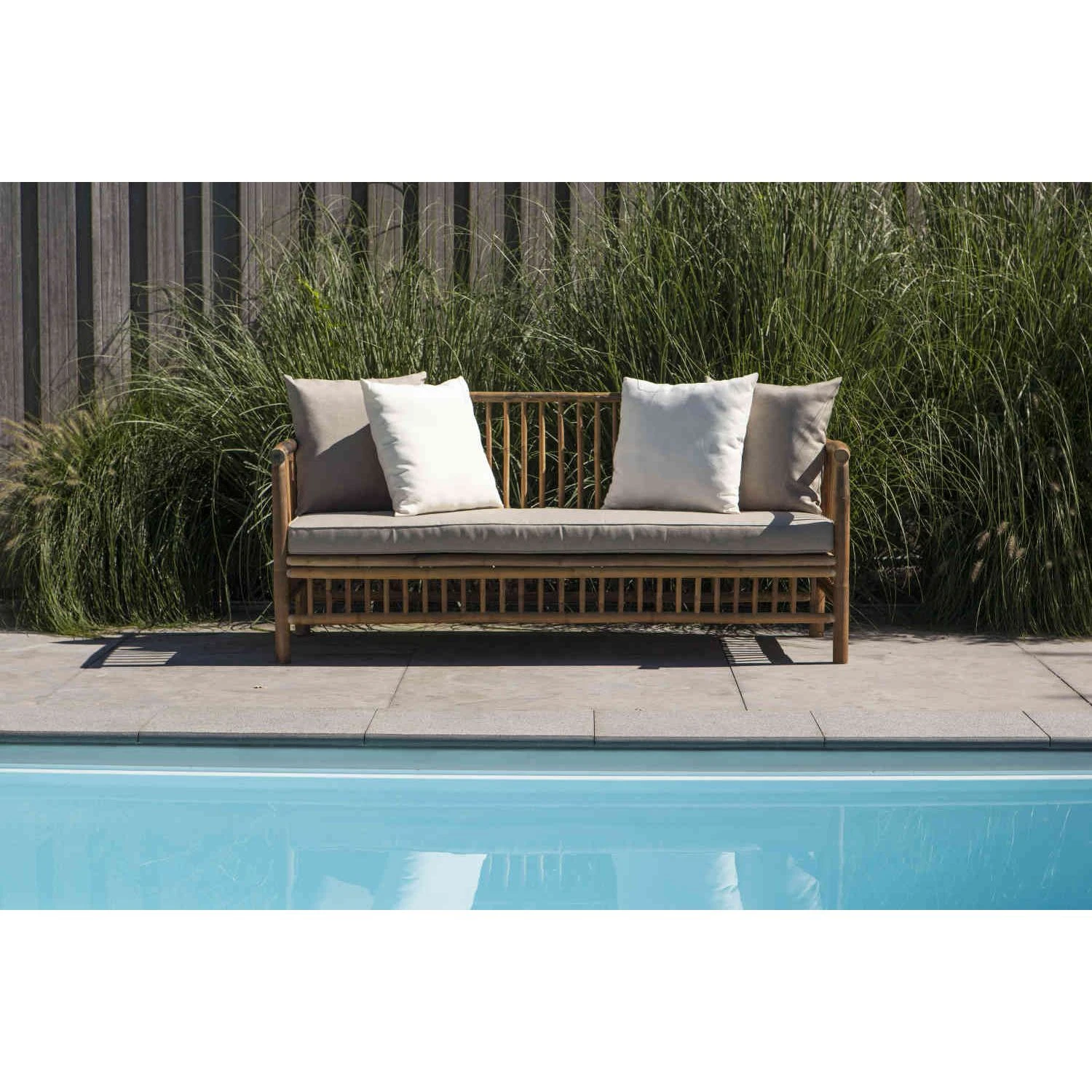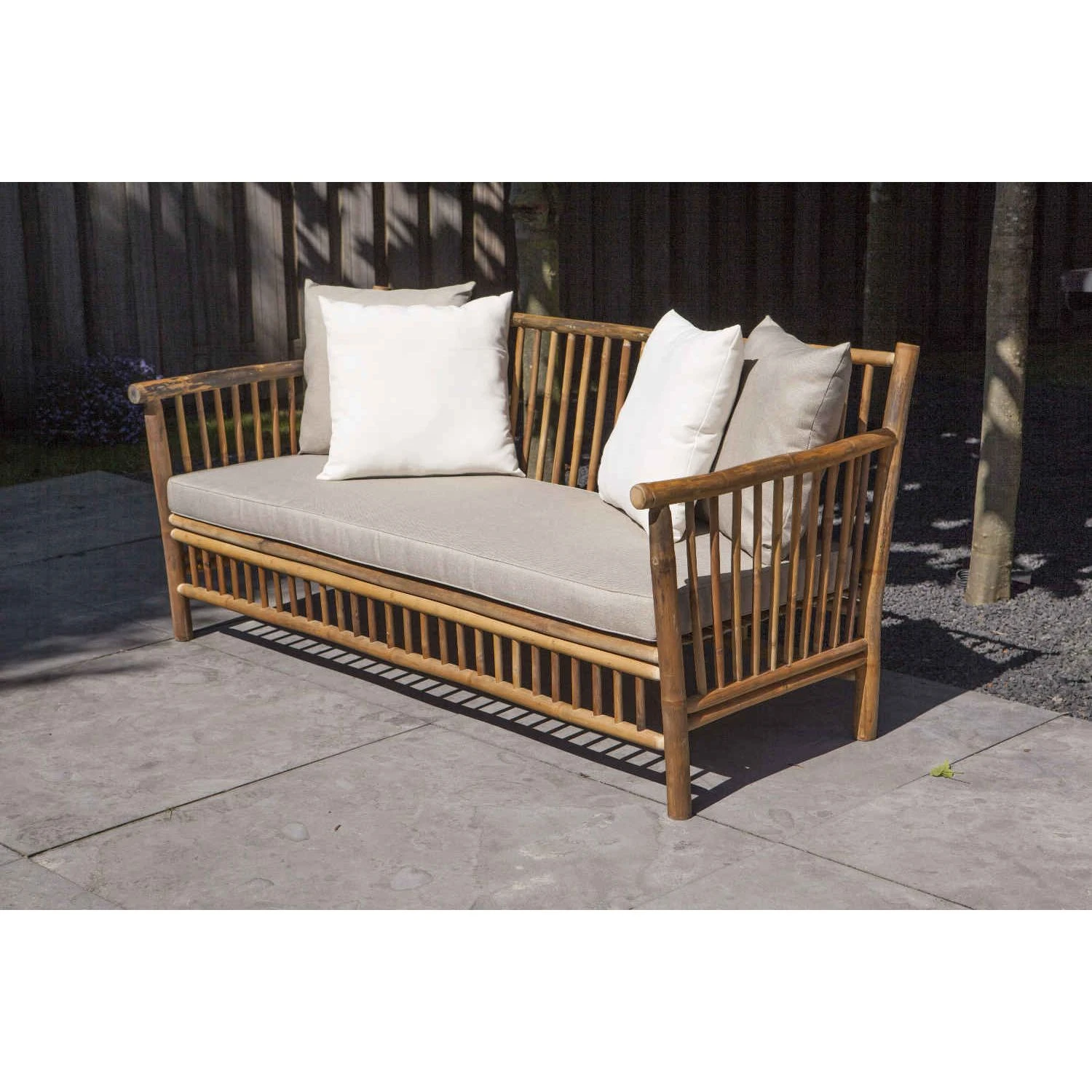 Deze zeer mooie bamboo bank heeft een Aziatische look. Deze heerlijk comfortabele bank past eigenlijk wel in alle tuin thuis, maar heb je een tuin met een Aziatische look dan mag deze bank zeker niet ontbreken. De bamboo bank is voorzien van 1 zit kussen en maar liefst 4 rugkussens. De bamboo bank heeft een lengte van 185 cm en is geschikt voor 3 personen.