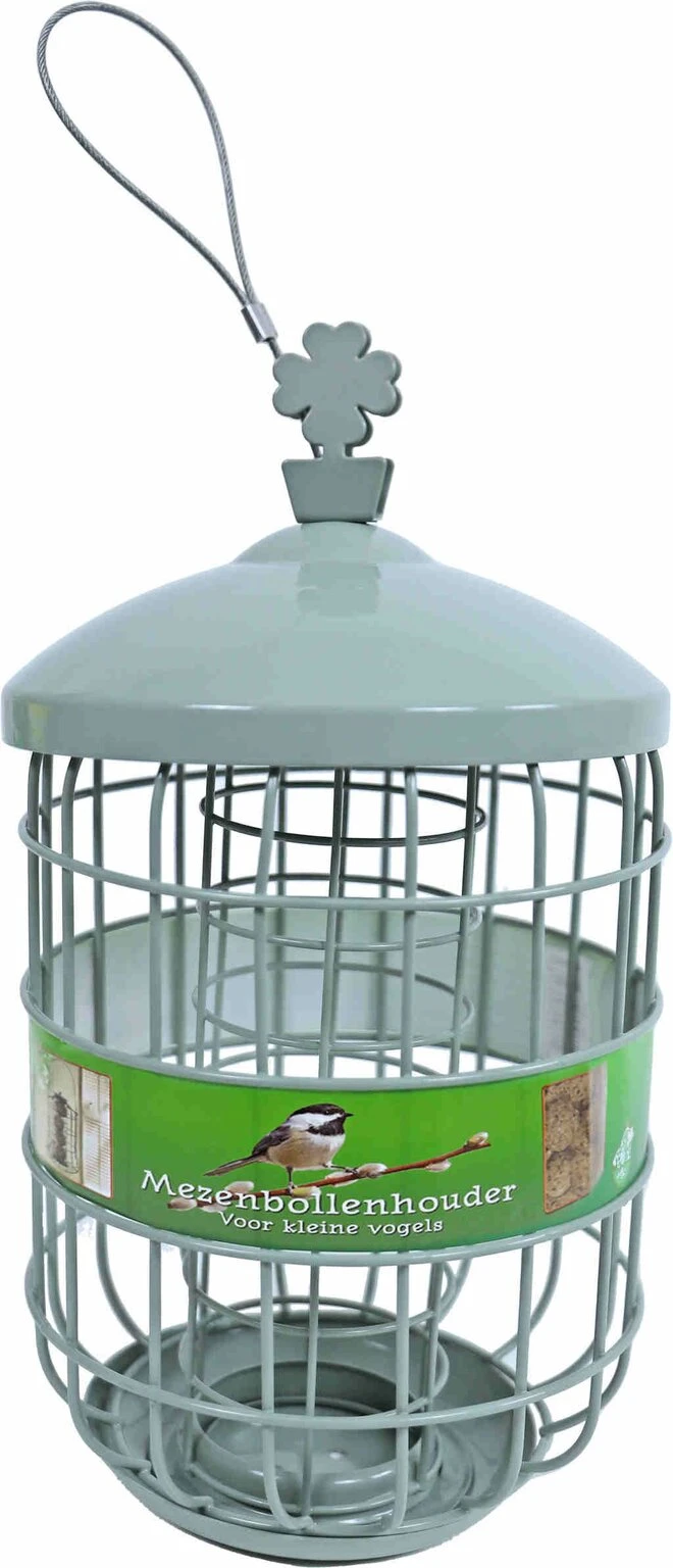 De metalen mezenbolhouderĀ in de kleur grijs / groen is een eyecatcher voor in de tuin of op het balkon. Met de metalen mezenbolhouderĀ kun je genieten van de kleine etende vogels. Het metalen fijnmazige rooster is speciaal ontworpen voor de kleine vogelsoorten. Doordat de metalen mezenbolhouderĀ fijnmazig is, is het onmogelijk voor de grote vogels om de mezenbollenĀ te pikken. De bovenzijde van de mezenbolhouderĀ kan los gemaakt worden, waardoor de mezenbolhouderĀ makkelijk gevuld en schoon gemaakt kan worden. De metalen mezenbolhouderĀ is gemakkelijk op te hangen door het ophangsysteem van metaaldraad.